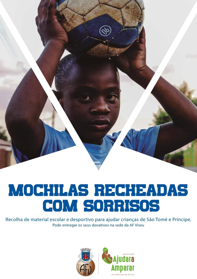 Em colaboração com a Associação Ajudar a Amparar, que a AF Viseu volta a apoiar, até à próxima quinta-feira (23 de maio), integrado na campanha “Mochilas Recheadas com Sorrisos”, estamos a recolher material escolar e desportivo, que será depois entregue a crianças e jovens santomenses