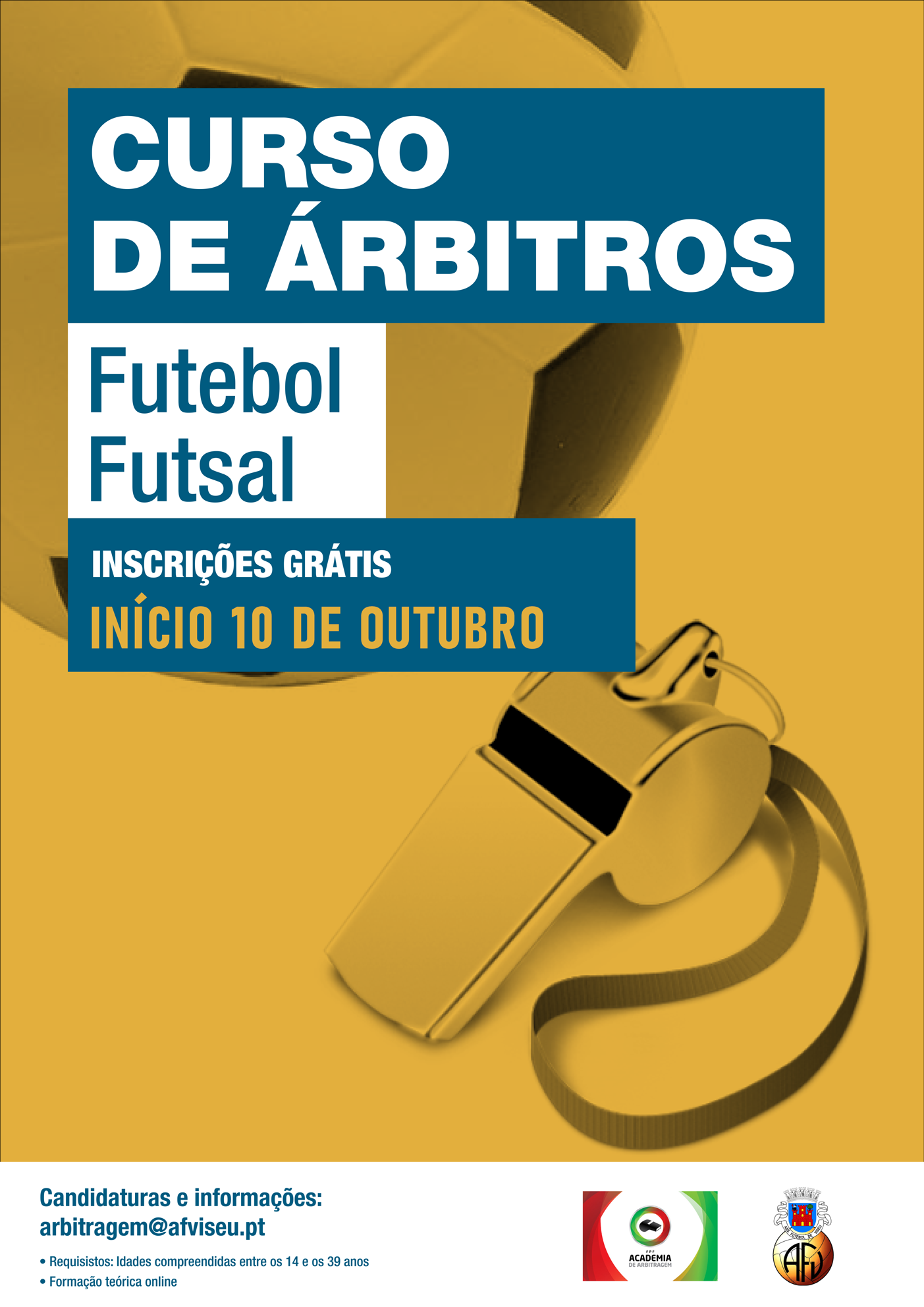 O Conselho de Arbitragem da Associação de Futebol de Viseu está a preparar um novo curso de árbitros de futebol e futsal. A ação tem início dia 10 de outubro, estando as inscrições ainda a decorrer (aqui).